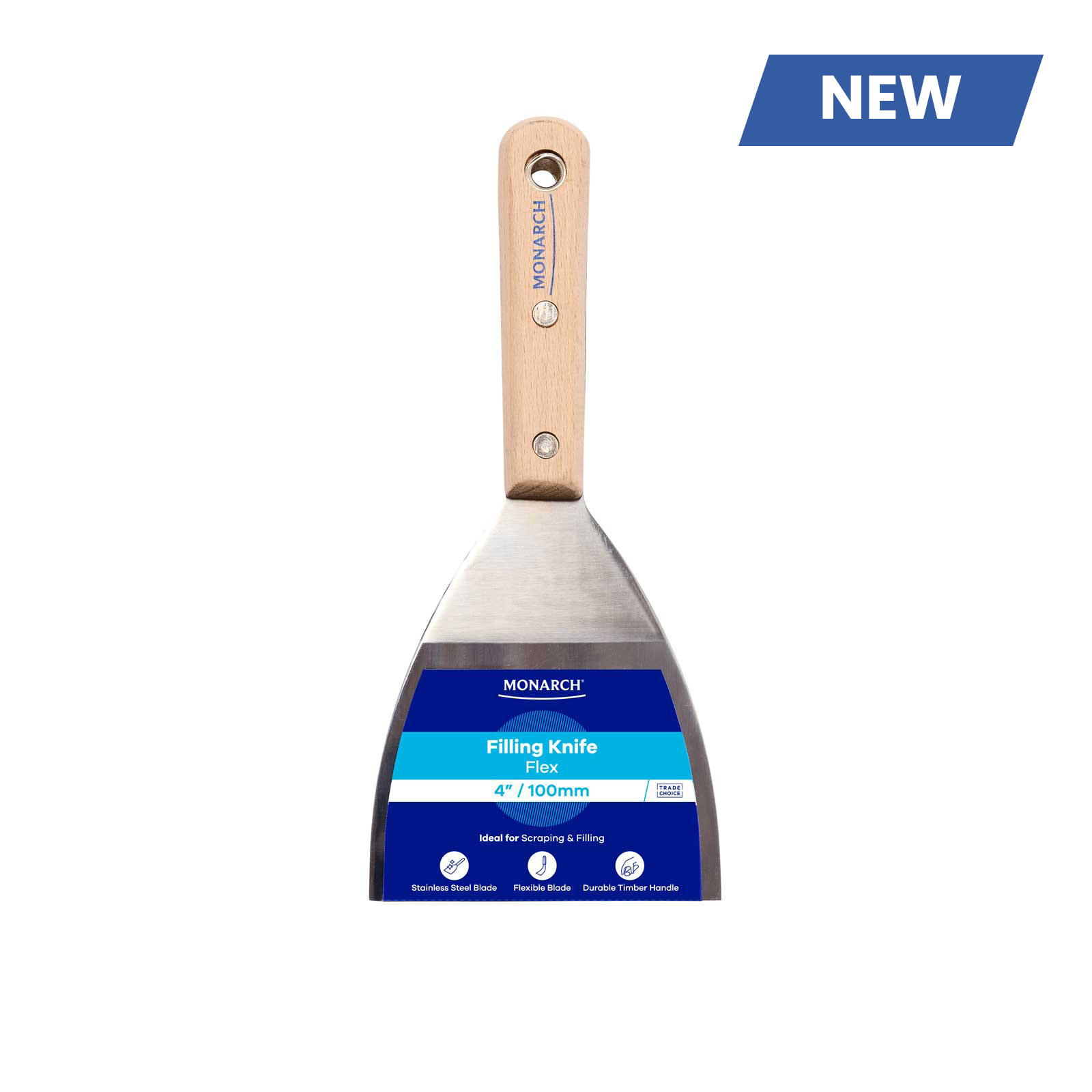 Flexible blade is ideal for both scraping and applying filler